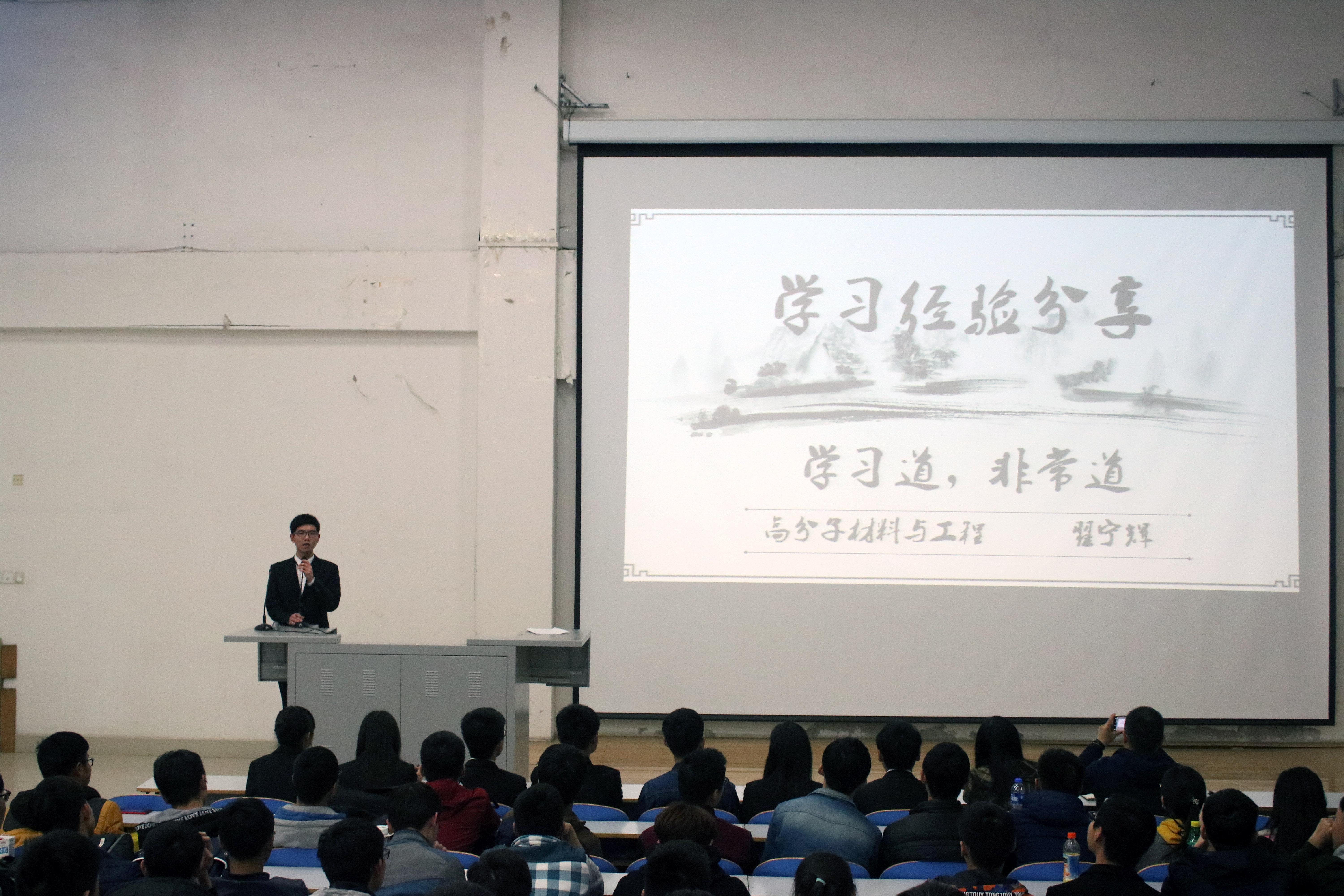 在主持人的简单开场后,朱老师首先上台致辞,讲述了本次活动的目的和意义。王老师在随后的发言中指出,她希望同学们在这次活动中有所得,有所学。接着,9位“学霸”依次为同学们分享了他们的学习方法和技巧,这九名同学平均学分绩点均在3.8以上,都是班级公认的学习“达人”。其中,王欣然同学的“心若在,理想之路就不远”;翟宁辉同学的“生命不息,奋斗不止”让同学们感触颇深,赢得了阵阵掌声;新材器16-01班的孙明辉同学介绍了他的大学生活所获,他提出要有正确的生活态度和端正的学习态度才能使自己劳逸结合。九名优秀的同学给大家分享自己的学习生活经验。在交流过程中,发言的同学以朴实却不失精妙的语言将自己的学习方法毫无保留地与同学们分享,使在场的同学获益匪浅。之后两位老师为优秀学生颁发奖状并合影留念。最后,由朱老师对活动进行总结,并指出学习要有恒心、有目标、有规划、立长志,对同学们给予更高的期望。