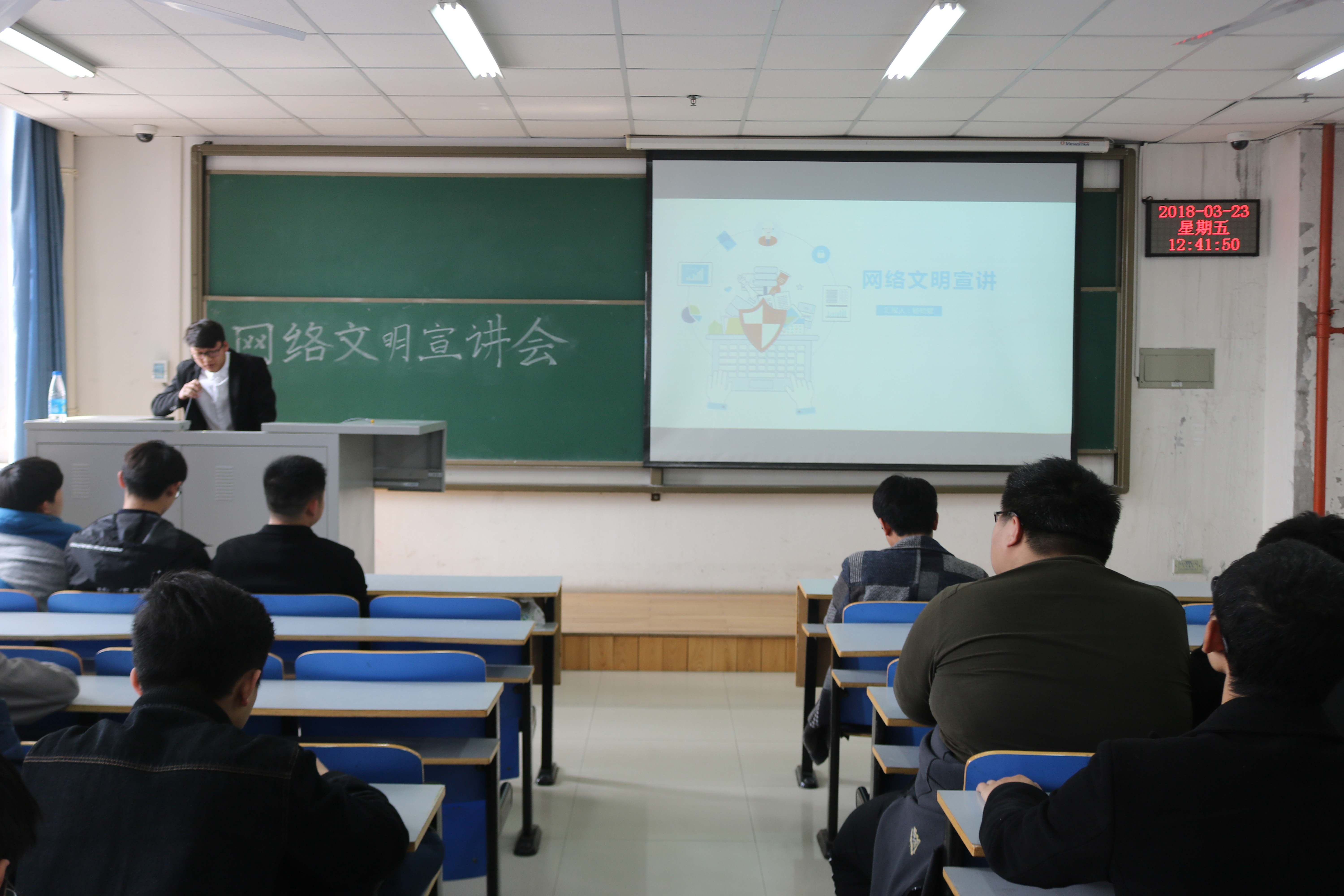 分团委、学生会于3月23日中午在二教楼808室举办了网络文明志愿行动宣讲会。