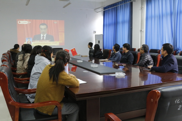 2019年3月5日上午9时,十三届全国人大二次会议在人民大会堂隆重开幕。为了及时、全面学习领会十三届全国人大二次会议精神,PA真人视讯游戏 组织师生党员以各种形式收听收看十三届全国人大二次会议开幕会盛况。在化工楼222会议室,真人游戏 领导及部分教工党员、集中观看了十三届全国人大二次会议开幕会。