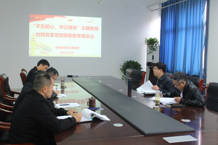 为深入落实“不忘初心、牢记使命”主题教育工作,11月7日,PA真人视讯游戏 党政领导班子在化工楼222室召开 “不忘初心、牢记使命”主题教育对照党章党规找差距专题会议,会议由党总支书记康国磊主持。
