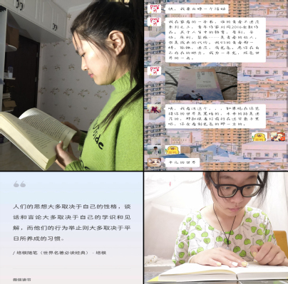 此次活动中,新材器专业举办的“与书为友”主题活动,疫情居家期间,以书会友,丰富知识、开阔视野、陶冶性情、启迪智慧。环境工程专业的“书香长假”,品冬雪夏蝉、赏春花夏荷。高分子专业通过分享好的影视作品“品之影,沁之心”与经典对话、品百味人生,带着同学们做了一场思维上的体操。应用化学专业开展了“书香岁月,影留人心”线上活动,整个活动以一“文”字贯穿始终,她净洁如水,体香如花,让同学们沉浸在静谧的夜里,沉浸在书影的馨香中,安静的去思索,带来一份线上的静谧时光。