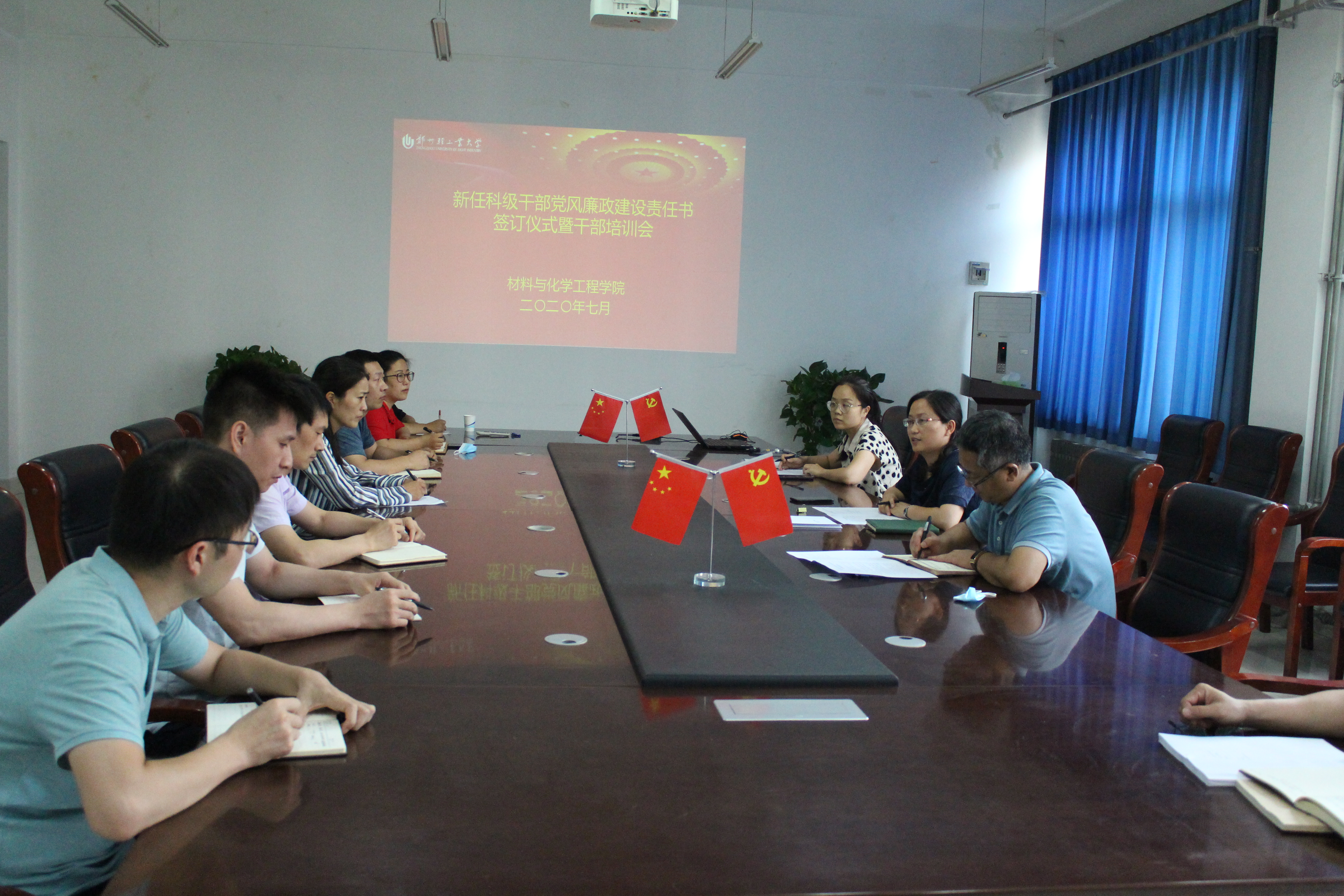 7月24日下午,PA真人视讯游戏 在化工楼222会议室召开新任科级干部党风廉政建设责任书签订仪式暨干部培训会,真人游戏 领导班子及新任科级干部参加会议。会议由真人游戏 党委书记常亮主持。