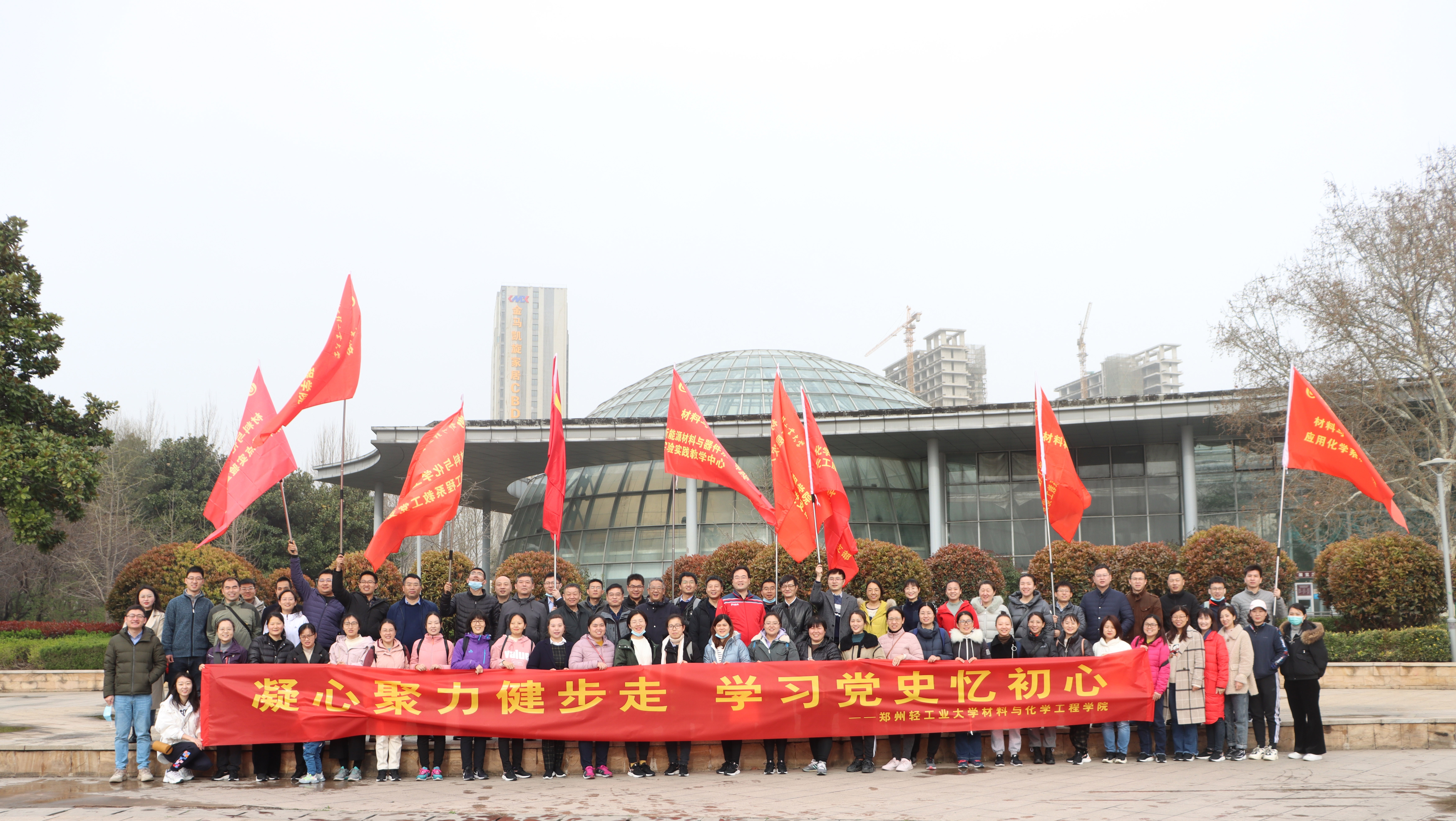 为庆祝中国共产党成立100周年,不断增强党组织的凝聚力、向心力和战斗力,3月20日上午,PA真人视讯游戏 在郑州市植物园开展“凝心聚力健步走,学习党史忆初心”主题党日活动。全体教工党员、部分学生党员代表参加了本次活动。