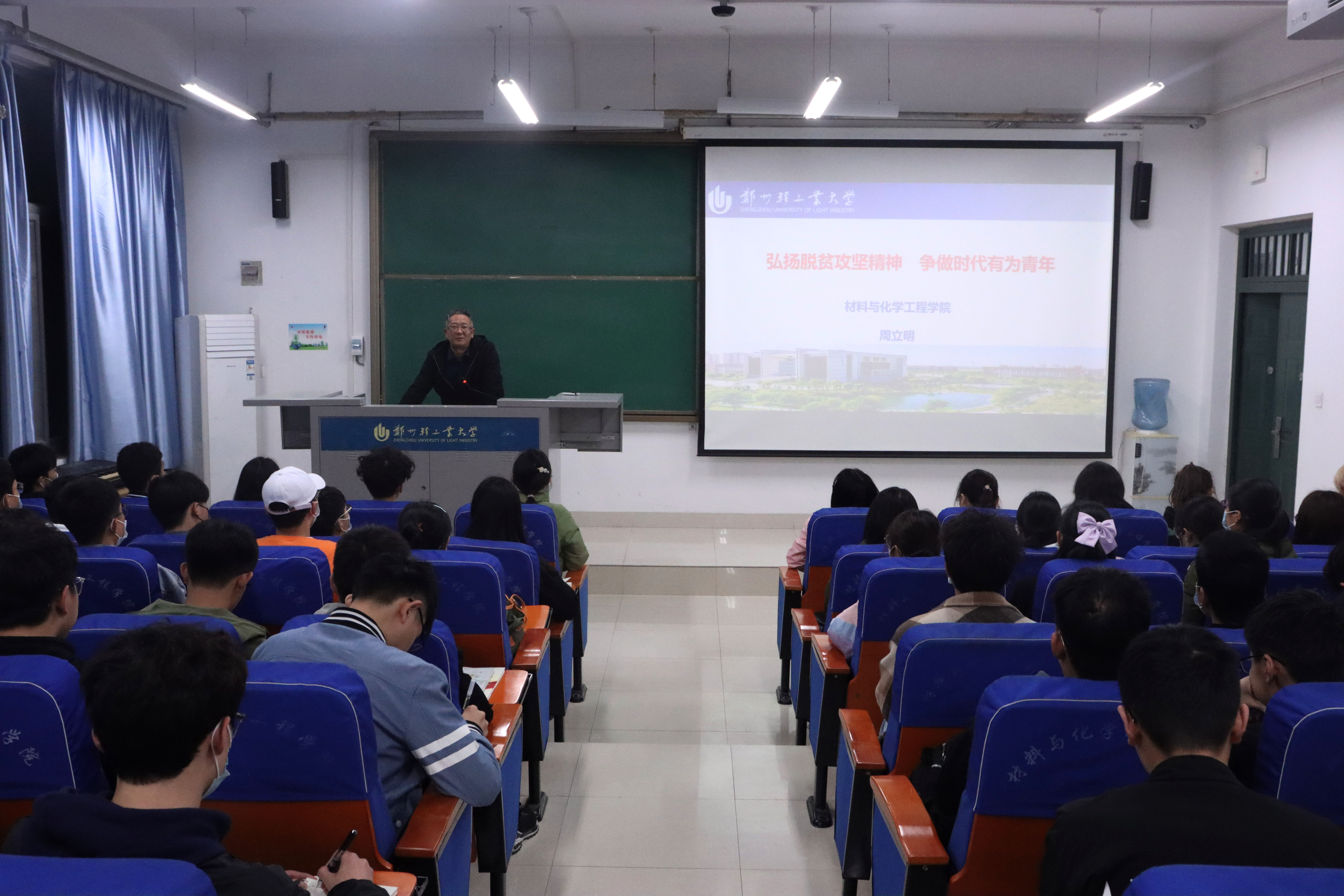 3月18日,周院长以“弘扬脱贫攻坚精神,争做时代有为青年”为题,以中国古代“荒政十二策”为切入点,讲述了中国历史上中华民族同贫困做斗争的历史事件。从“坚持党的领导”“坚持以人民为中心的发展思想”“坚持精准扶贫方略”等七个方面,解释了为什么只有中国共产党才能带领中国人民消除绝对贫困。周院长强调,青年大学生要树立正确的世界观、人生观和价值观,提高危机意识和长远意识;要坚持滴水穿石的学习精神,学习第一、迎难而上;要培养团结互助的协作意识,“像石榴籽那样紧紧抱在一起”;要有一颗感恩的心,对父母、对学校维桑与梓、必恭敬止,对他人、对社会衔环结草、以恩报德。