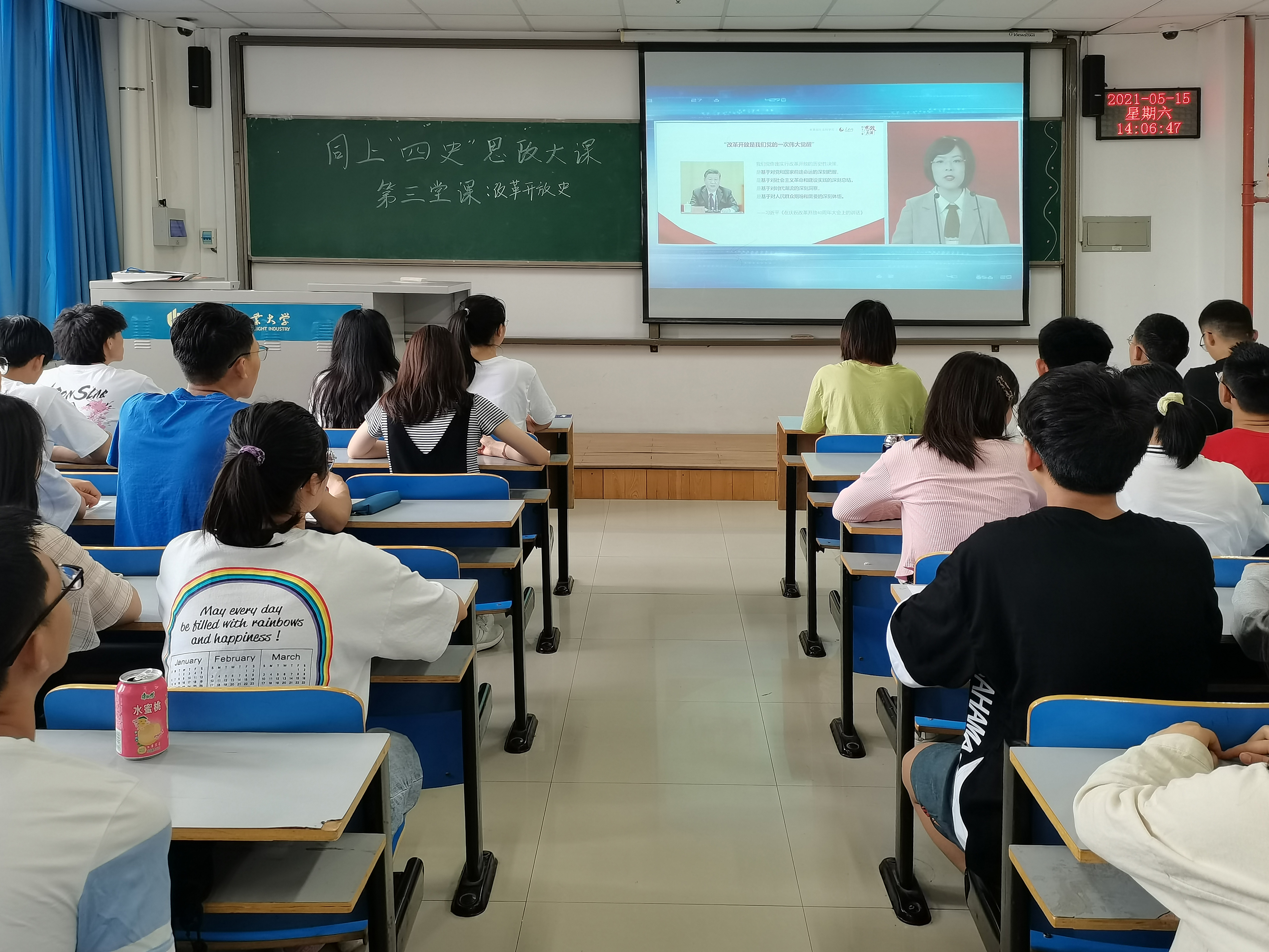 为深入贯彻落实党中央和省委教育工委的要求,全面落实习近平总书记在党史学习教育动员大会上的重要讲话精神,5月15日14点,PA真人视讯游戏 组织全体学生党员和部分入党积极分子分别在化工楼218、二教808教室及宿舍集体观看“同上改革开放史思政大课”直播课程。