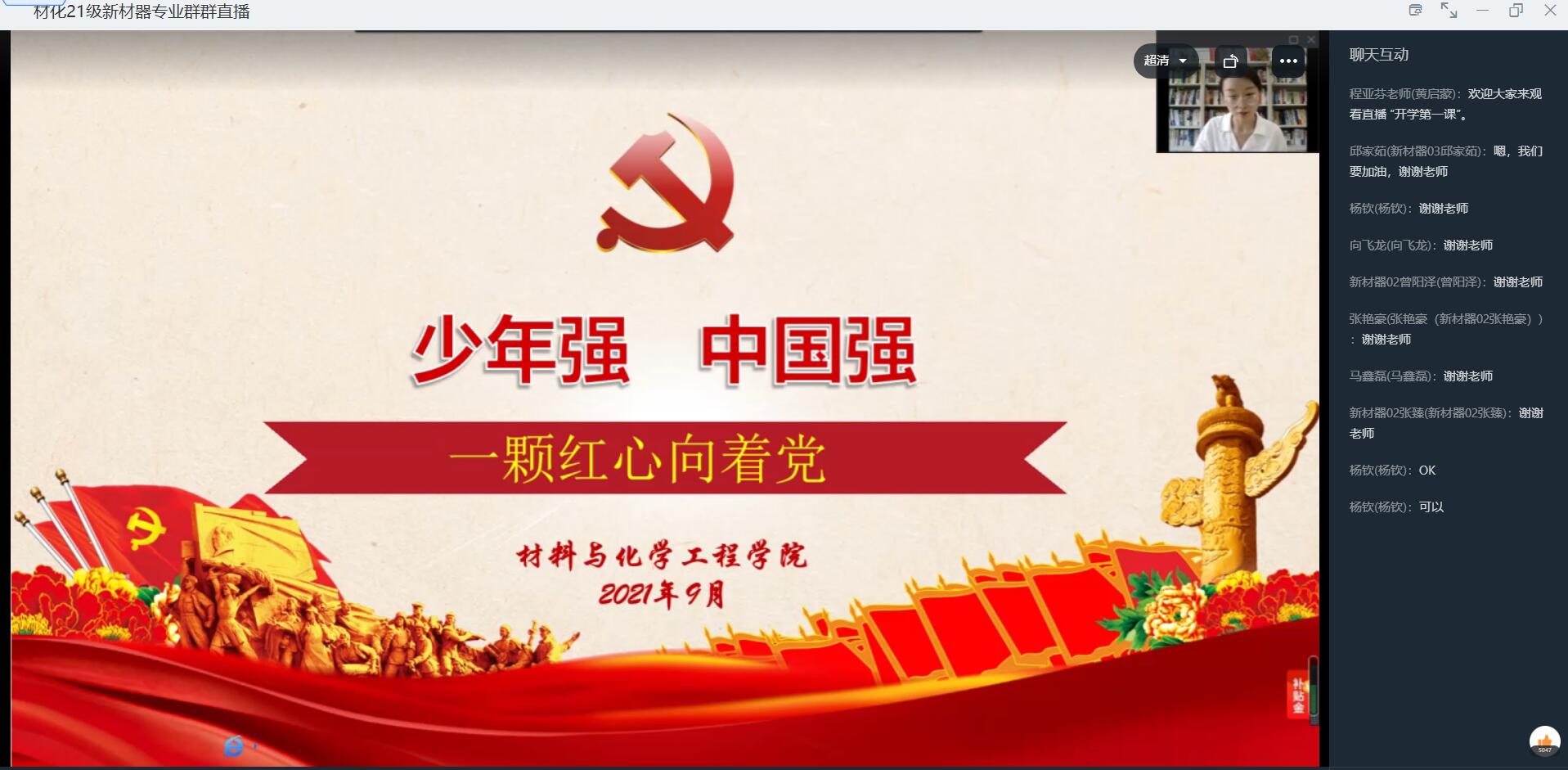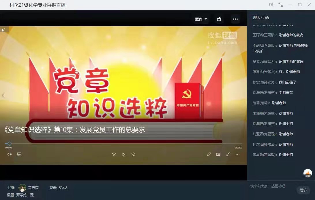 会上,程老师从当代大学生为什么加入共产党谈起,阐述了党的指导思想、党的纲领、党的章程等基本党务知识;简要介绍了真人游戏 学生党建基本情况及近几年取得的成绩,对学生们关心的入党程序、标准、条件进行详细介绍,让广大积极要求进步的新生对党组织有了初步的了解;通过介绍“汛情疫情”期间,真人游戏 先进共产党员和优秀积极分子的感人事迹,勉励同学们要树立正确的入党动机,积极向党组织靠拢。随后,程老师带领同学们一起观看视频《党章知识选粹》:“发展党员工作的总要求”“申请入党的条件”。同学们认真听讲之余主动和老师进行线上交流与互动,纷纷表示在今后的生活、学习、工作中,以高标准去严格要求自己,努力践行党的宗旨,争取早日成为一名光荣的党员。