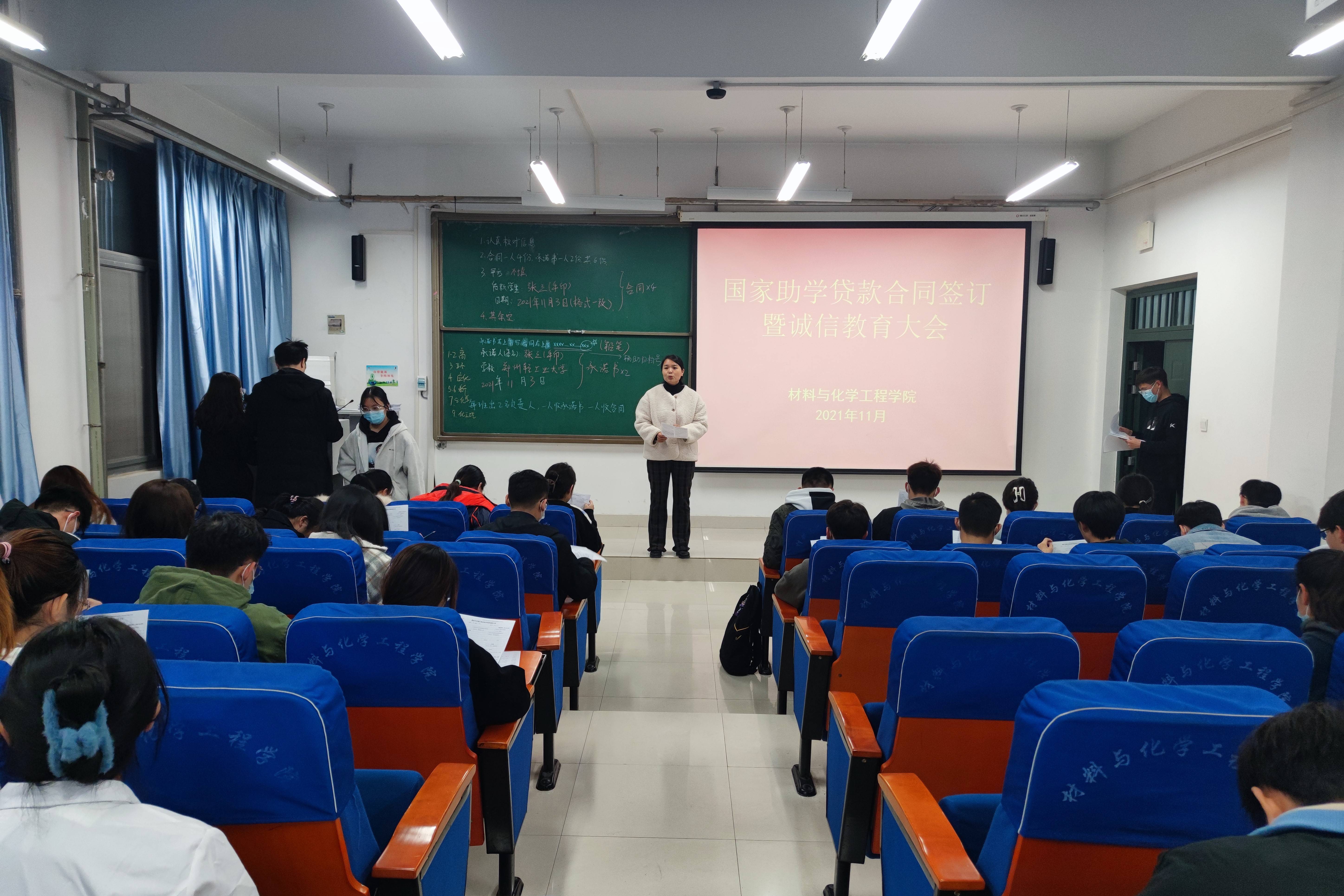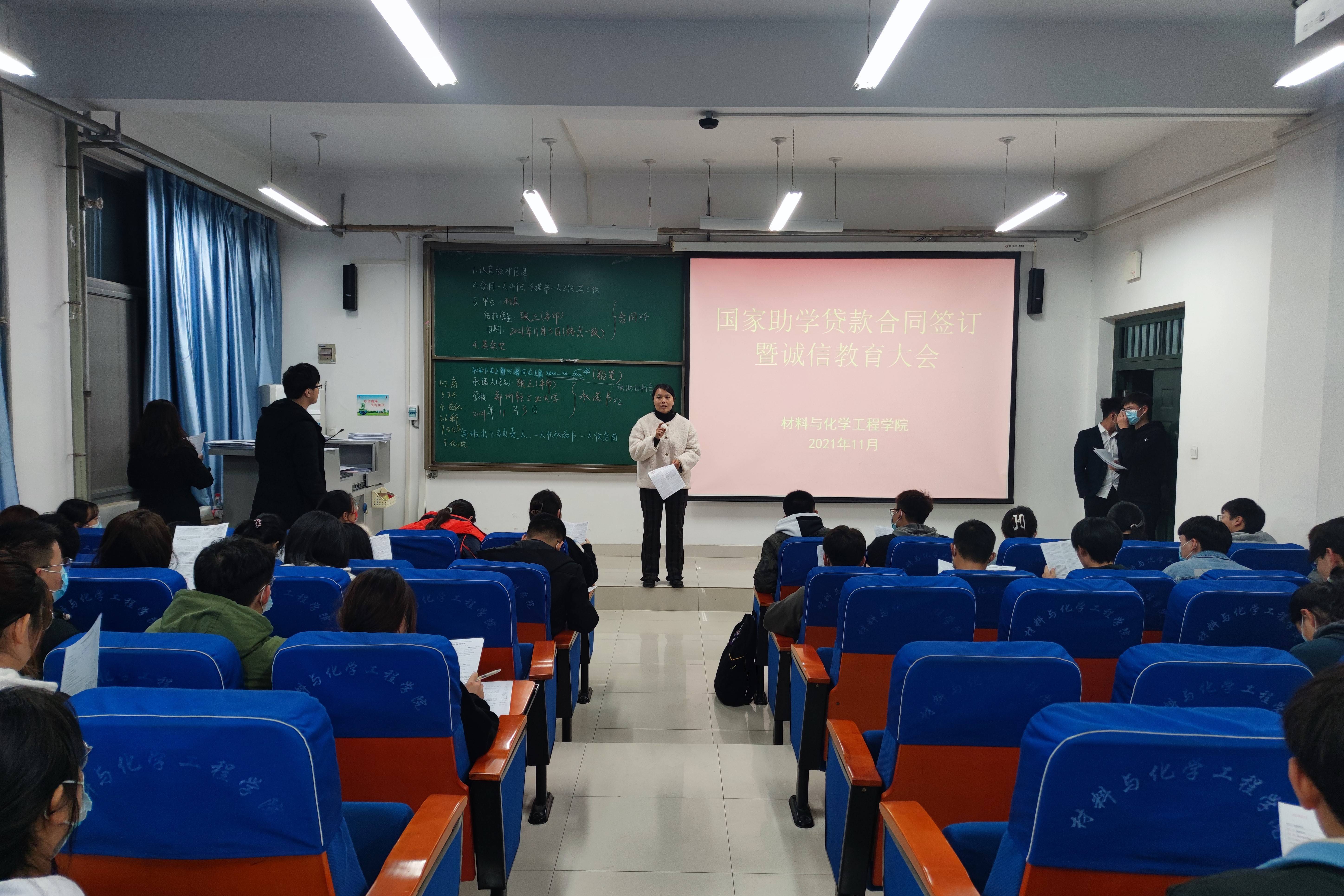 为进一步加强资助育人工作,提高广大学生诚信意识和风险防范意识。11月15日,PA真人视讯游戏 在科学校区化工楼218组织召开了国家助学贷款合同签订暨诚信教育大会。辅导员李瑞瑞老师及申请高校助学贷款的学生参加了此次会议。