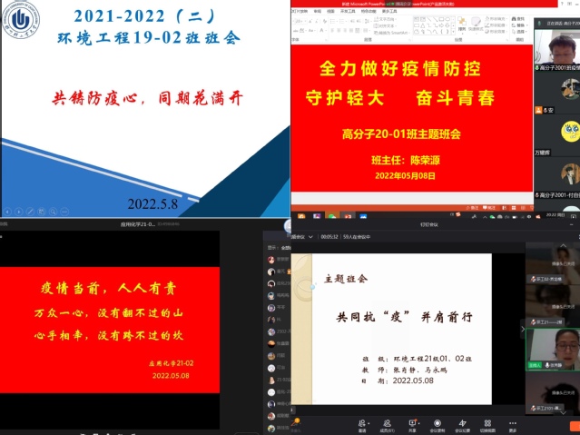 5月7日,材料与化学工程真人游戏 发布《关于校园实行封闭管理期间广大教师参与学生教育管理工作的通知》,全体系(中心)主任、班主任、研究生导师立刻行动,以线上指导方式加入疫情防控、学生管理工作队伍,协助完成学生教育、管理、服务等工作。5月7日-8日,全体辅导员、班主任召开线上疫情防控主题班会。