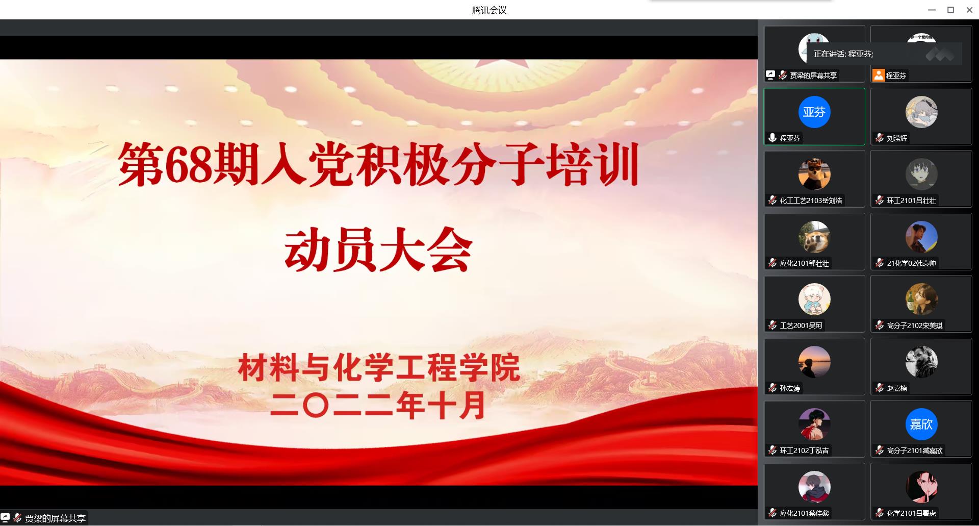 为深入学习贯彻党的二十大精神,做好入党积极分子的培养教育工作,提高入党积极分子的思想政治素质,严把入党“第一关”,10月28日,PA真人视讯游戏 举行第68期入党积极分子培训动员大会,真人游戏 党委副书记司丽娜、组织员程亚芬和第68期入党积极分子培训班全体学员参加此次会议。