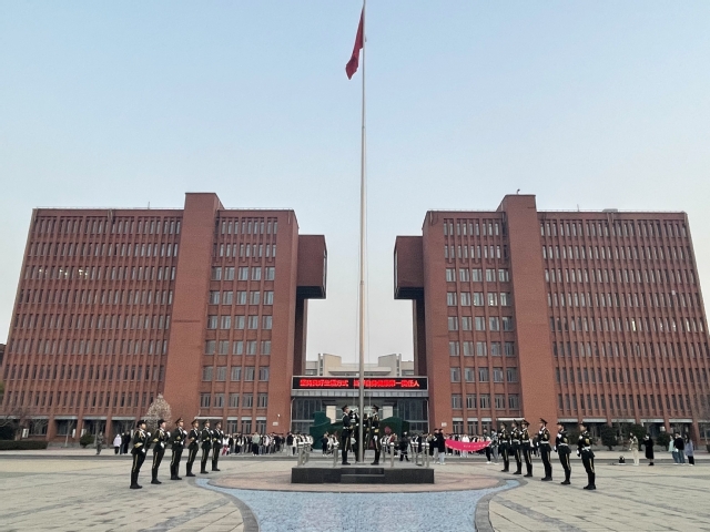 清晨6点40分,国旗护卫队昂首挺胸,迈着铿锵有力的步伐,护卫着鲜艳的五星红旗入场,伴随着庄严的国歌,五星红旗冉冉升起,在场全体师生行注目礼,现场气氛庄重肃穆。之后,来自2021级的学生代表李文桢同学进行题为《学习二十大,青春著华章》的国旗下演讲。她从学习党的二十大精神内涵出发,号召当代青年学生要胸怀理想、脚踏实地,将党的二十大精神内化于心、外化于行,不断加强理论学习,为谱写新时代中原更加出彩的绚丽篇章贡献青春力量。
