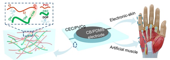 氰乙基纤维素/聚氯乙烯凝胶(CEC/PVCg)的制备、组装及驱动/传感示意图