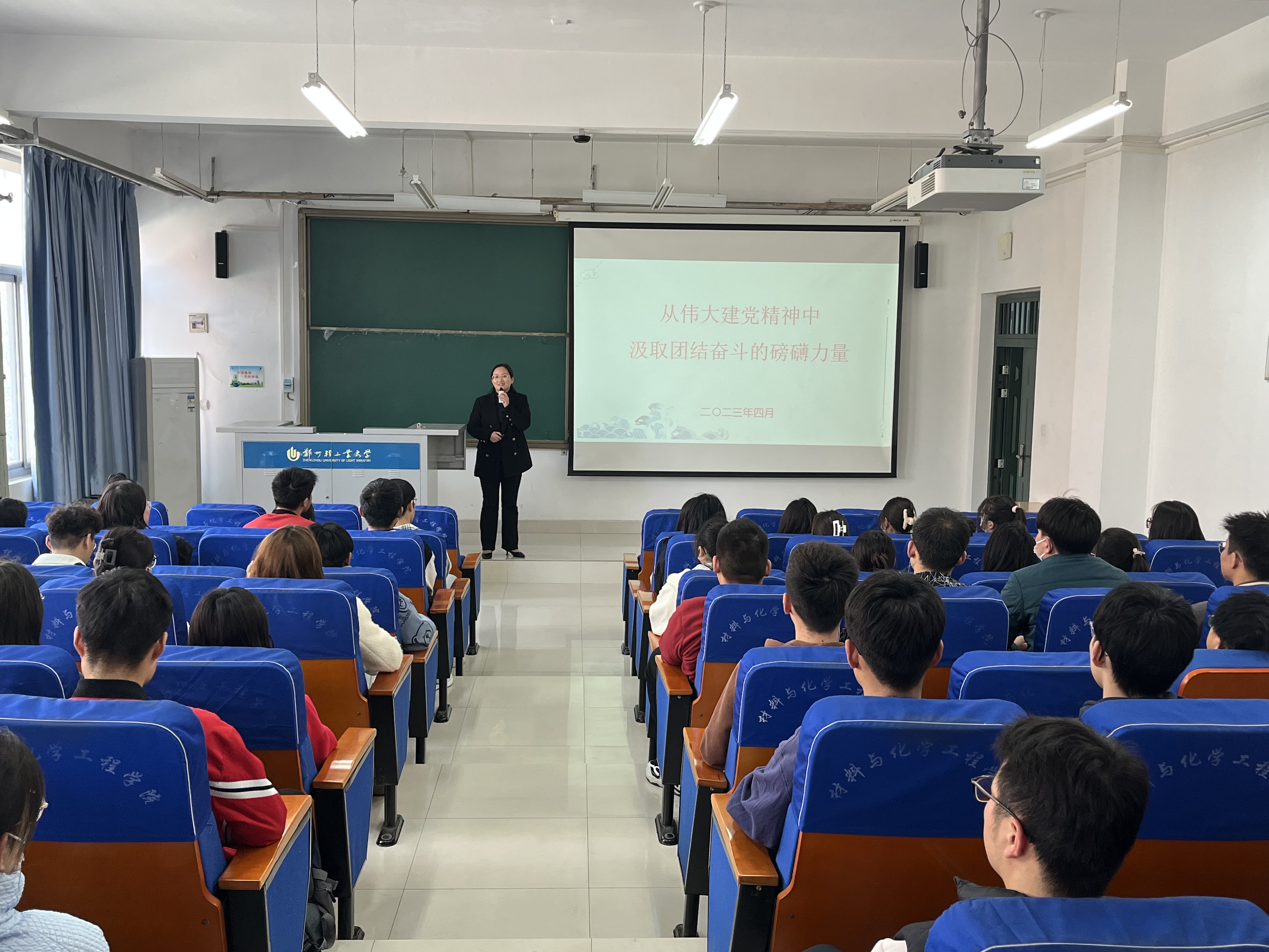 4月7日,PA真人视讯游戏 党委书记常亮在化工楼218室,为入党积极分子讲授《从伟大建党精神中汲取团结奋斗的磅礴力量》专题思政课,真人游戏 第69期入党积极分子培训班学员到会学习。