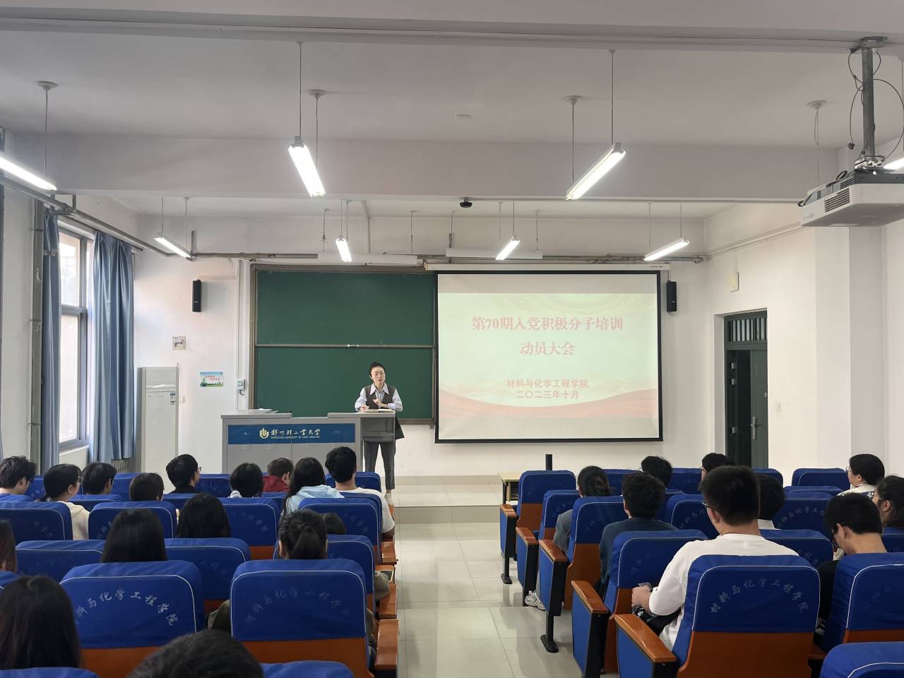 10月24日,PA真人视讯游戏 在化工楼218举行第70期入党积极分子培训动员大会,真人游戏 组织员程亚芬和第70期入党积极分子培训班全体学员参加此次会议。