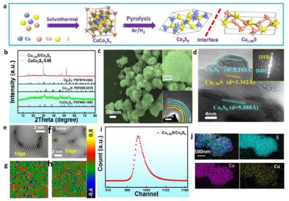 近日,PA真人视讯游戏 肖元化、方少明教授团队在《Journal of Materials Science & Technology》(影响因子10.9,中国科真人游戏 1区)报道了金属硫化物电催化水分解最新研究成果。团队通过控制双金属硫化物的组分,在临界分解温度下一步热解成功构建富S空位的Cu1.96S/Co9S8异质结构。测试表明该材料在电催化OER过程会发生重构,而HER过程材料保持一定的稳定性。同时,通过密度泛函理论(DFT)模拟,证明了Cu1.96S/Co9S8中的S空位和异质结构界面优化了HER的电子结构和中间体的吸附,展现了优异的HER性能。而异质结的重构也能降低OER过程中的普遍性团聚问题,提高了OER性能。因此,该异质结材料展现了优异的双功能电催化水分解性能。本研究为构建具有丰富缺陷和相似界面的金属硫化物异质结及其在电催化应用领域中的动态演化研究方面提供了有效的策略。以上研究成果得到了河南省自然科学基金优秀青年基金(212300410091)的支持。(通讯员:肖元化)