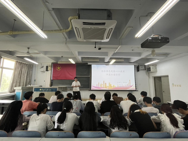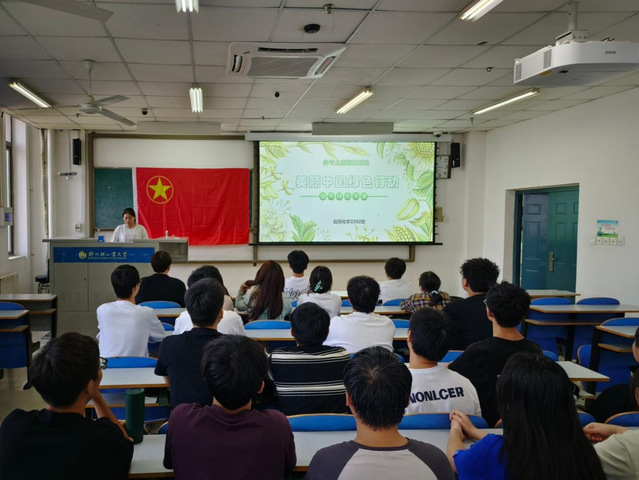 活动开始,首先由团支书热情洋溢地进行了ppt宣讲,随后团支书通过播放视频和与同学们互动问答等多种形式,向同学们深入浅出地讲解了生态文明的内涵,绿色发展的重要性以及我国在生态文明建设方面做出的努力与取得的显著成就;又以生动的案例回答了如何在日常生活中实现节能减排、资源循环利用等绿色生活方式,引导大家树立正确的生态观念。在活动中,同学们积极参与讨论,分享自己对于绿色发展的理解和实践。同学们纷纷表示,要将绿色理念融入学习、工作和生活的方方面面,从小事做起,为建设美丽中国贡献自己的青春力量。