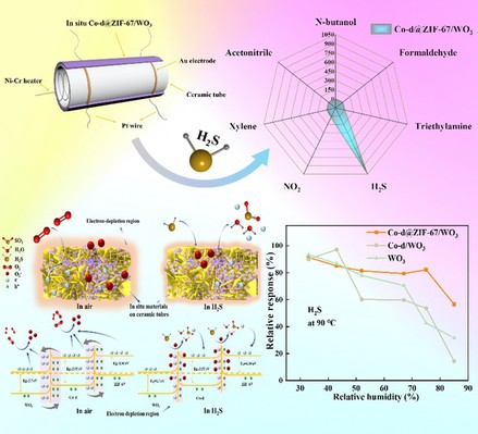 近日,PA真人视讯游戏 桂阳海教授课题组联合澳大利亚Griffith University在材料科学领域Top期刊《Advanced Science》上发表题名为“In-Situ Synthesis of Hierarchical Co(CO3)0.5(OH)·0.11H2O@ZIF-67/WO3 with High Humidity Immunity and Response to H2S Sensing”(《原位制备高抗湿和高灵敏的多级结构Co(CO3)0.5(OH)·0.11H2O@ZIF-67/WO3硫化氢传感器》)的高水平论文。