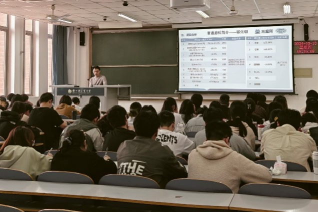 2024年10月10日,PA真人视讯游戏 应用化学专业邀请校友三磨所-精工博研测试技术(河南)有限公司廖小伟来校作报告,为学生讲授专业技术前沿。应用化学系主任刘军伟、王焕新等专业教师及2021级全体学生参加此次会议。