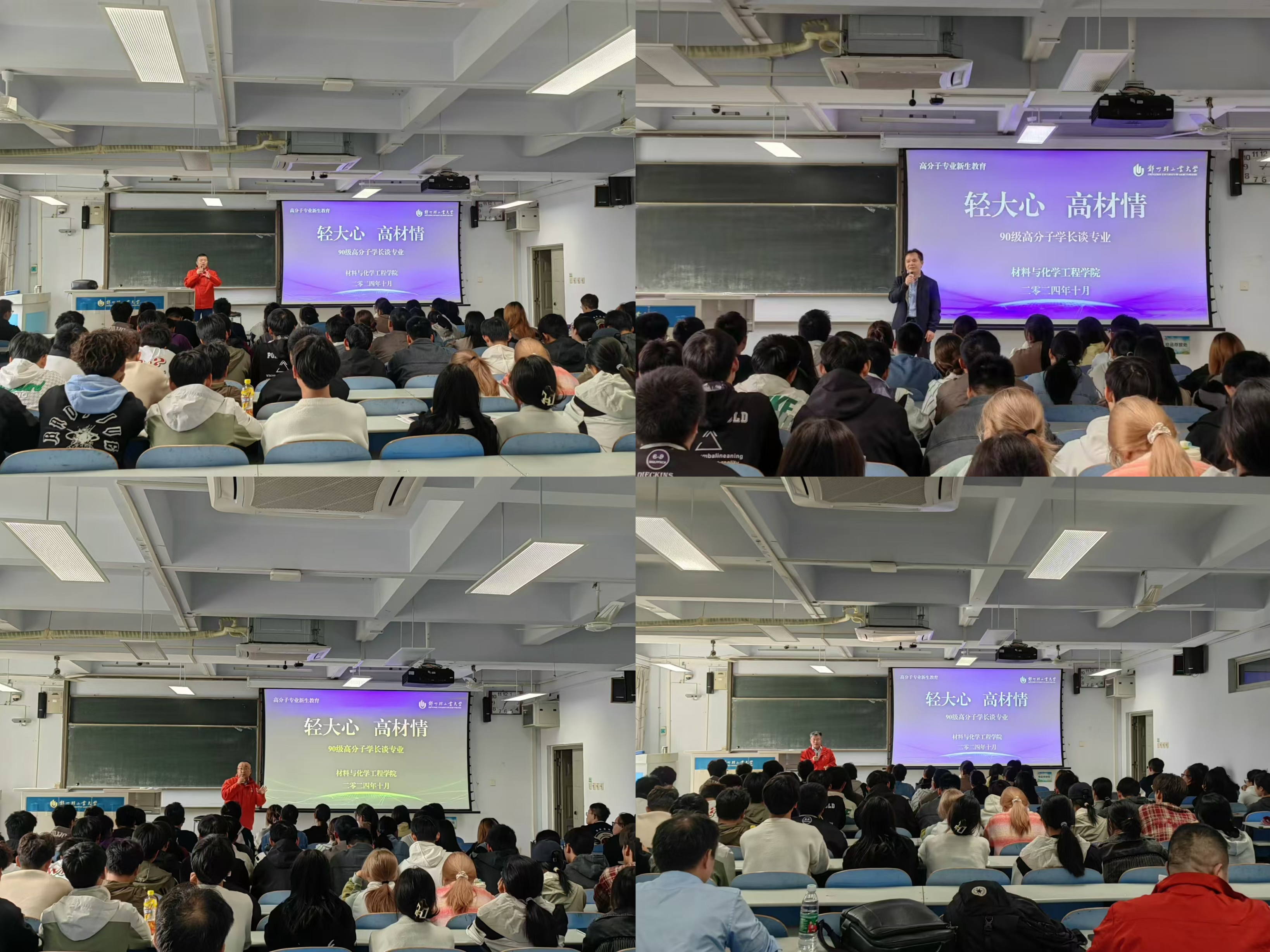 讲座中,四位校友用生动的故事、幽默的语言,与同学们讲述了自己的成长历程,分享了个人体会和人生感悟,分析了高分子专业的行业的现状、未来趋势、新兴技术或市场变化。他们也对新生的学习生活、未来发展提出了期望及建议,要做好规划,建议大一新生在入学之初就明确未来发展目标,制定切实可行的计划,并积极付诸行动;要夯实本专业基础,这既是学业成功的关键,更是未来职业生涯发展的必备武器;要探索未知,勇于创新,不断拓宽知识边界,做到“精一多专”;要注重实践,积极参与各类实习实践活动,不断丰富人生阅历,提升综合素质。整场报告案例生动,观点新颖,贴近实际,寓意深刻,为同学们科学制定职业规划、走向成功人生指明了道路,受到了与会师生的一致好评。