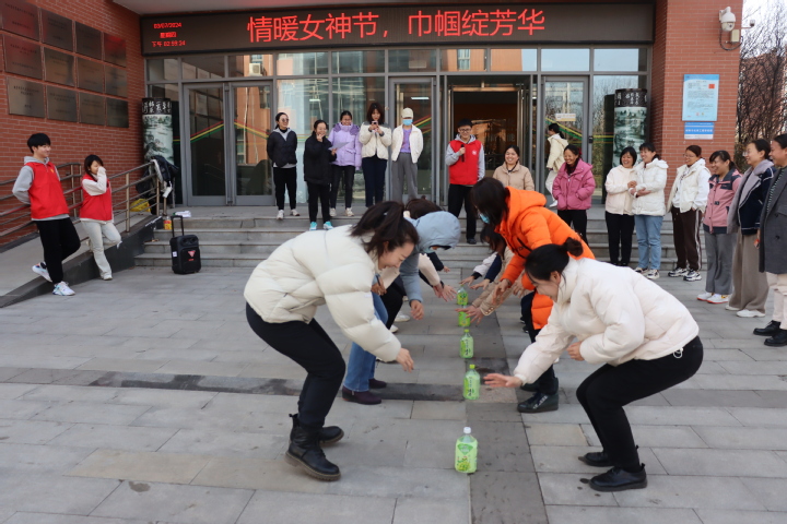 活动中,根据随机分组,按组别依次比赛,老师们站定位置,个个全神贯注,听着指令做动作:“摸头,摸膝盖,拍肩膀……”当听到“瓶子”时,反应快的一方以迅雷不及掩耳之势将水瓶夺过。老师们灵活敏捷、身姿矫健,放下平时的严肃,洗去满身的辛劳疲惫。现场一片欢声笑语,洋溢着温馨、浓厚的节日气氛。