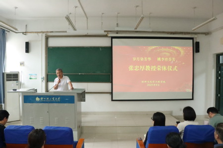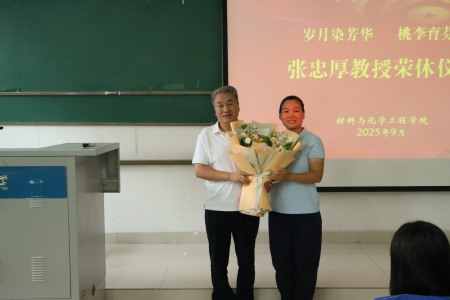 真人游戏 党委书记常亮对张忠厚老师数十年如一日的无私奉献致以衷心感谢,对张老师在真人游戏 教学、科研、社会服务等领域做出的突出贡献表示崇高敬意,衷心祝愿张老师退休生活丰富多彩、幸福安康。她提出,材化真人游戏 的发展离不开每一位教师的辛勤努力,希望全体教师以前辈为榜样,积极践行教育家精神,共同推进学校事业高质量发展。