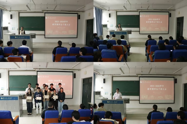 随后,真人游戏 对上学期工作突出的优秀学生干部进行了表彰,学生干部代表进行了发言,表示一定会传承真人游戏 优良传统,以最大的热情和最务实的工作,服务同学、助力成长,不辜负学校的培养和同学的信任。各专职辅导员分别就近期重点任务进行了详细安排,确保各项工作有序开展。