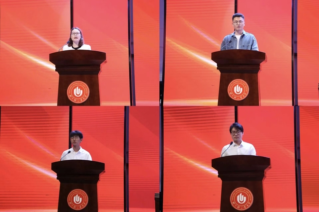 教师代表河南省高校教师教学创新大赛一等奖获得者王明花鼓励同学们做“扎根的学习者”,在求知中明方向;做“有温度的行动者”,在成长中修品德;做“追光的传承者”,在奋斗中续华章,以青春为笔、以奋斗为墨,在轻大写下属于自己的精彩篇章。2025级博士新生代表杨文通、2025级本科新生代表宋天祥、2023级硕士研究生代表吴大命依次发言,他们号召大家要接过历史的接力棒,大力弘扬科学家精神,勇攀高峰、敢为人先,以实际行动为科技强国建设贡献青春力量。