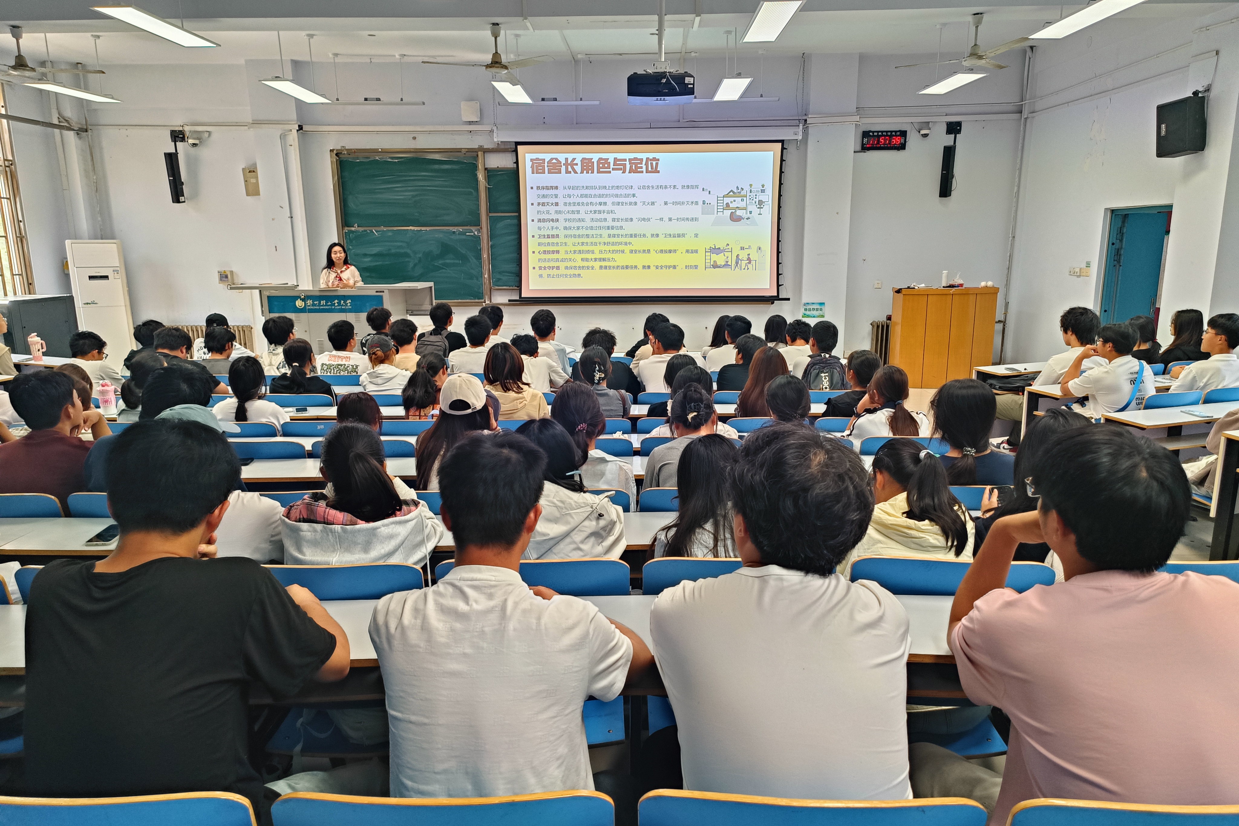 会议中,培训围绕严格管理宿舍作息纪律、主动协调成员人际关系、确保信息及时准确传达、常态化开展安全隐患排查和及时上报突发特殊情况等方面展开,通过真实案例的分享,强调了宿舍长作为一线网格长的重要角色定位,宿舍长是宿舍情感与信任的枢纽,不仅要做好信息传达,更要发挥“翻译器”作用,将班级的关心转化为室友能感知的温暖,把室友的需求准确传达为班级能理解的诉求。辅导员强调宿舍安全必须坚持从细处着手,做到防患于未然,切实筑牢宿舍安全防线。