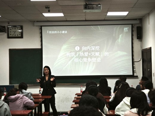 10月31日,在“专家进课堂”活动现场,国内知名美妆“橪”品牌创始人洪佳女士受邀担任主讲嘉宾,99级校友、上海友仁生物科技有限公司总经理王璞先生参与互动交流。洪佳女士结合“橪”品牌从初创到跻身行业前列的发展历程,向新生们生动细致地分享了化妆品行业从产品研发、品牌塑造到全域营销的全链条实战经验。她以“橪”品牌明星产品为例,详细讲解了研发团队如何攻克配方难题、优化成分组合,以及如何通过反复试验确保产品的安全性与功效性,让新生们深刻认识到专业技术在产品研发中的核心作用。她鼓励新生们在大学期间,既要认真学习专业知识,打好技术基础,也要主动关注行业动态,积极参与实践活动,不断提升自身综合素养。