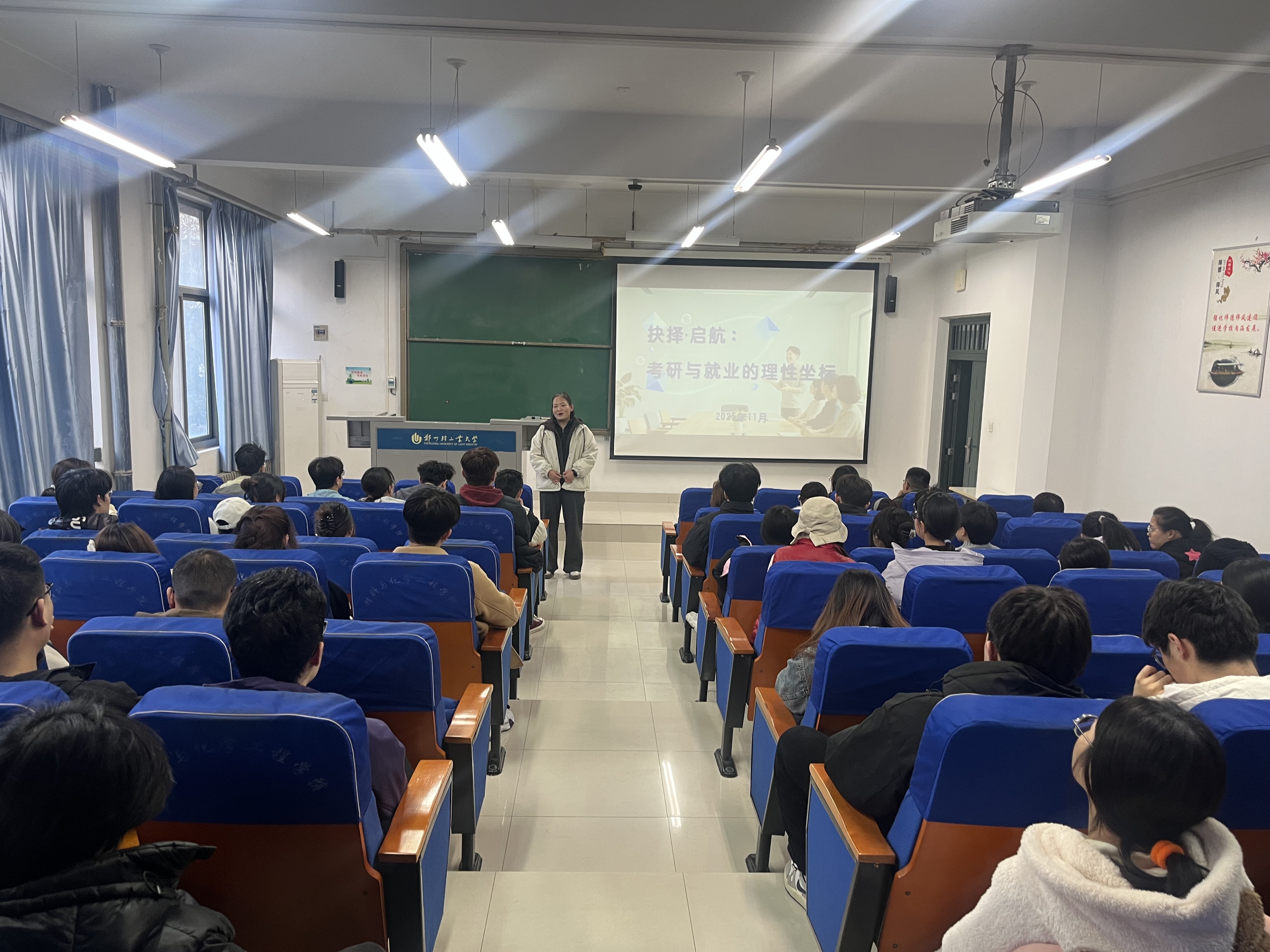 会前,辅导员与班主任通过座谈、宿舍走访及个别谈心等方式,深入了解了学生在学业规划方面的普遍困惑。班会上,针对同学们集中关注的“就业或考研选择”“发展方向模糊”“行业认识不足”等问题,班主任结合当前就业市场趋势与考研政策变化,运用具体数据介绍了本专业近年就业去向、薪资水平及考研录取情况,帮助学生客观把握不同发展路径的现状。辅导员就关键环节展开细致指导:就业方面,从简历制作、企业招聘偏好到面试技巧进行系统讲解,并推介了优质招聘平台与实习资源;考研方面,解析了热门院校与专业的报考难度,分享了高效复习与时间管理经验,提醒学生及时关注目标院校招生政策变化。在互动环节,学生踊跃提问,“跨专业考研如何准备”“兴趣与职业发展如何平衡”等问题得到老师们的耐心解答。部分已有明确规划的学生还主动分享了自身经验,现场交流氛围热烈。大家纷纷表示,通过此次班会,对未来发展有了更清晰的认知,接下来将结合个人实际情况制定合理规划,为进入毕业阶段提前做好准备。