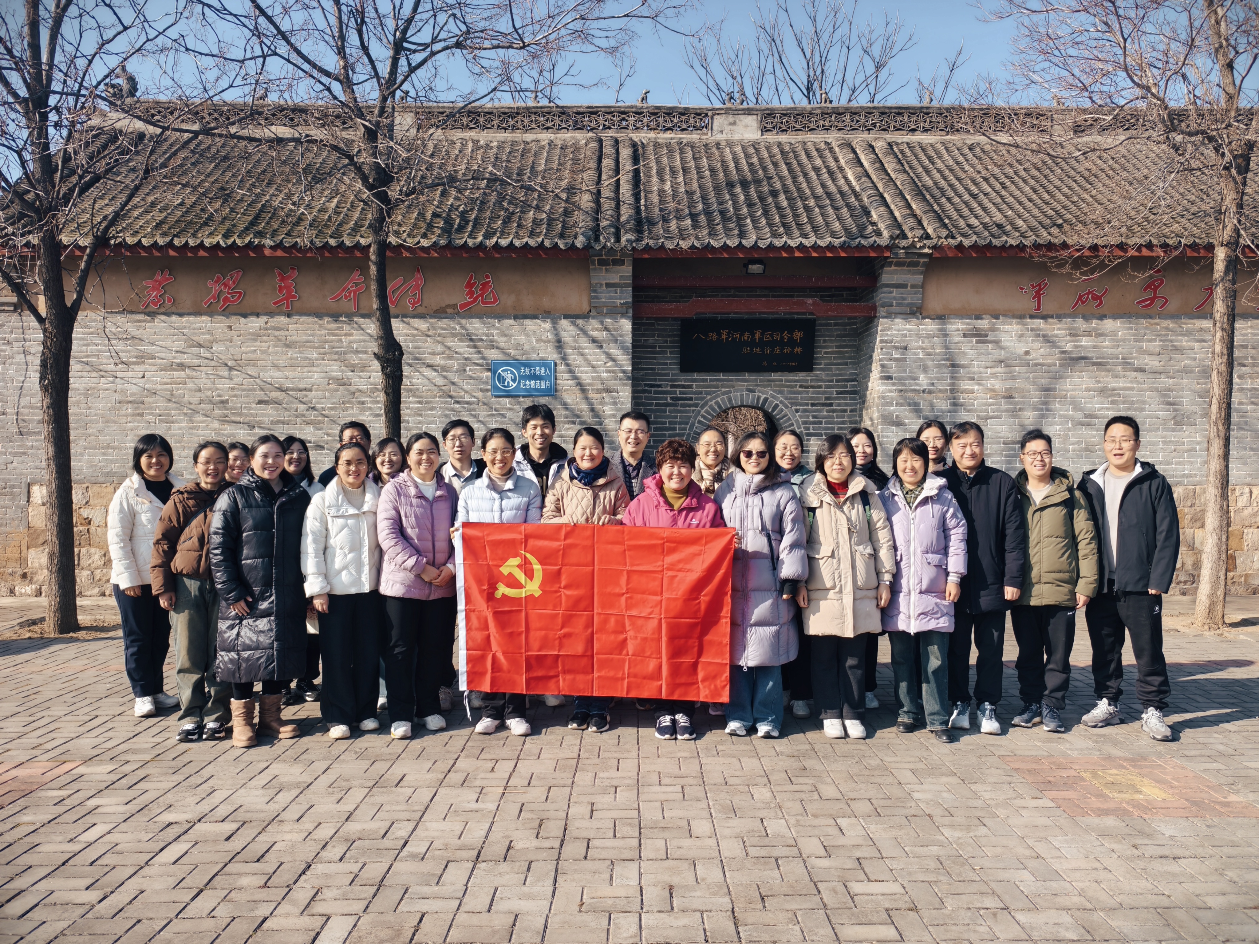 冬日的革命旧址松柏苍翠、庄严肃穆。在讲解员的深情引导下,党员们沉浸式重温烽火岁月,通过珍贵历史图片、斑驳实物展陈与场景复原,深刻感悟八路军河南军区在极端艰苦条件下领导军民浴血奋战、巩固抗日根据地的光辉历程,深切体会革命先辈坚定的理想信念、无畏的牺牲精神与深厚的家国情怀,进一步明晰中国共产党在民族危亡时刻的中流砥柱作用,强化了立德树人的使命认知。
