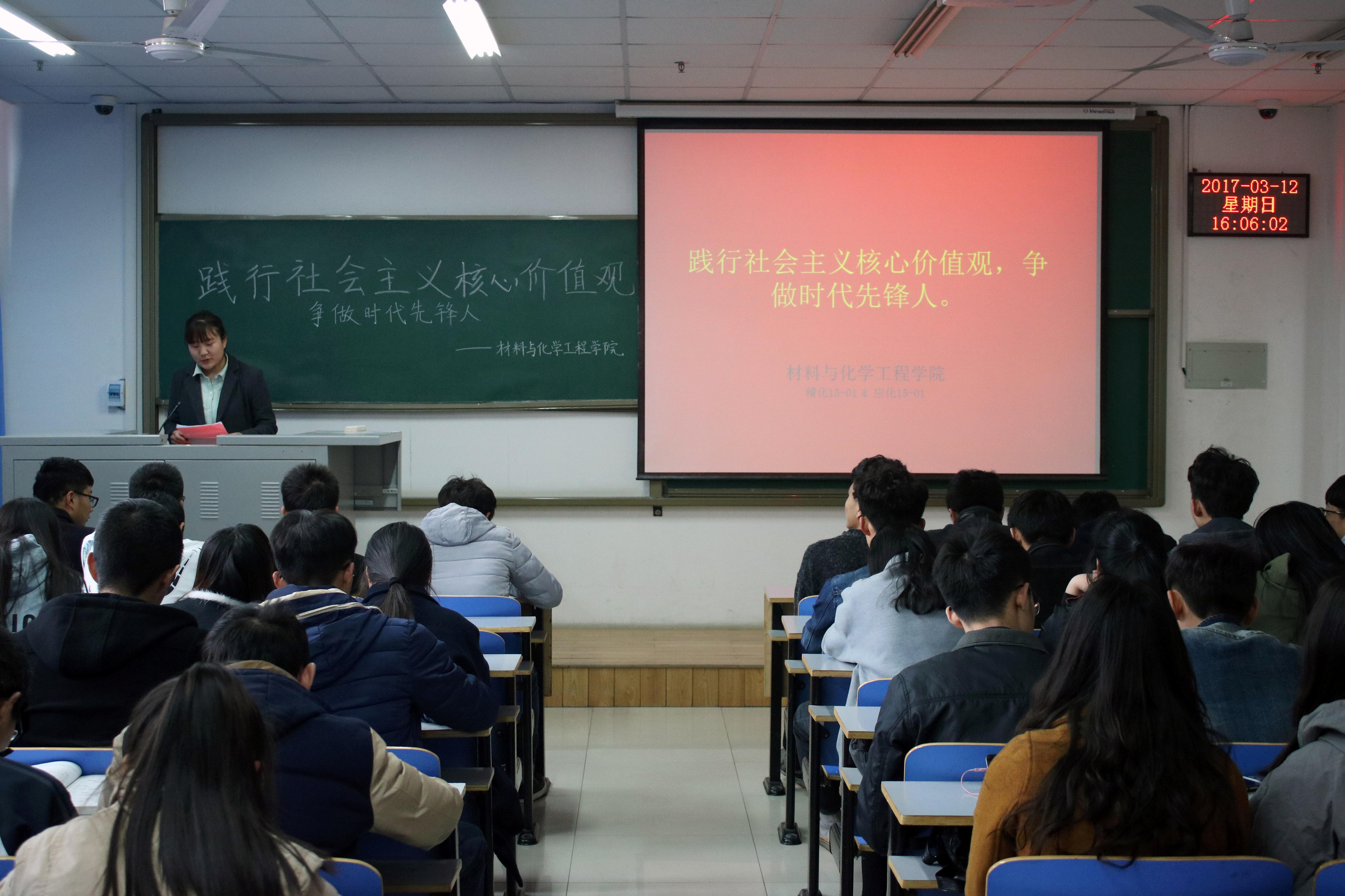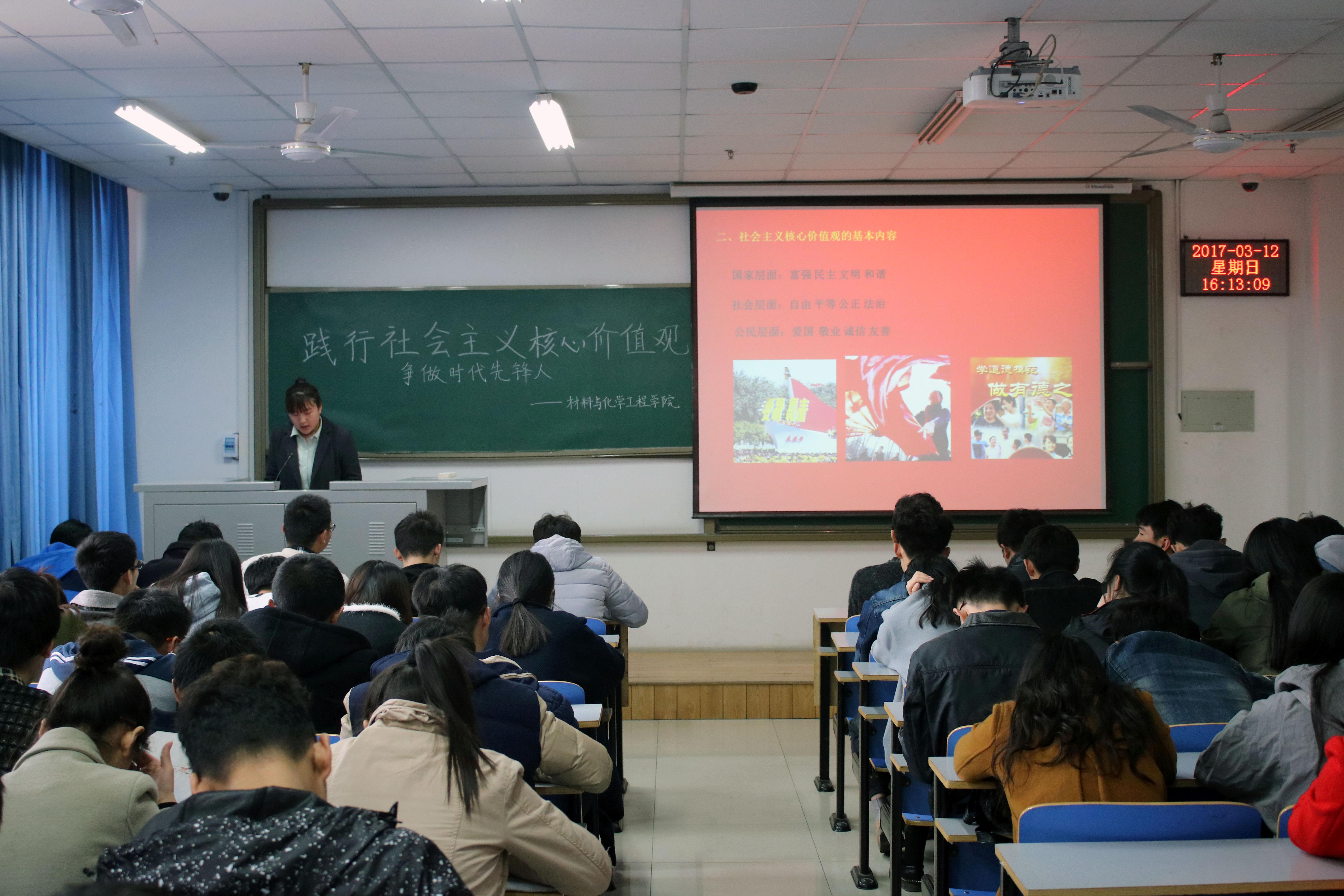 于2017年3月12日下午在二教楼804举办了“践行社会主义核心价值观,争做时代先锋人”主题团日活动。